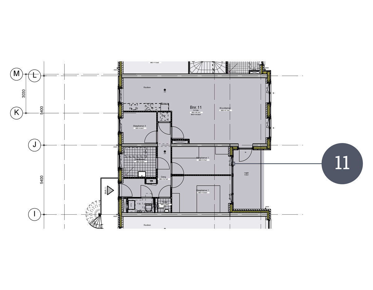 Ook vindt u hier de drie riante slaapkamers, de badkamer, een separaat tweede toilet en de technische ruimte waar u o.a. de wasmachine kwijt kunt. De loggia aan de oostkant kunt u via de woonkamer bereiken om daar in de avondzon ontspannen uw dag met elkaar door te spreken.